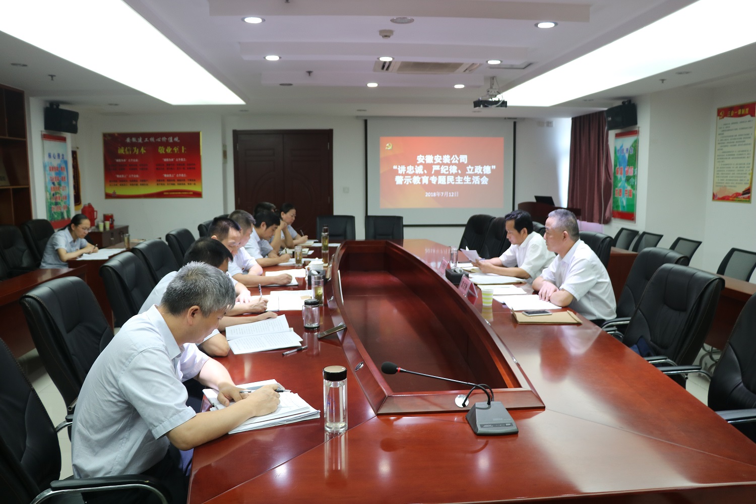 根據(jù)集團公司黨委關(guān)于“講忠誠、嚴紀律、立政德”專題警示教育統(tǒng)一部署,按照《安徽安裝公司關(guān)于以魯煒案徽商集團窩案等案件為反面教材開展“講忠誠、嚴紀律、立政德”專題警示教育的安排意見》要求,7月12日下午,安徽安裝公司黨委召開“講忠誠、嚴紀律、立政德”警示教育專題民主生活會。集團公司黨委副書記牛曙東,紀委副書記、紀檢監(jiān)察室主任龔志酬到會指導。會議由公司黨委書記、副總經(jīng)理胡六中主持,公司領(lǐng)導班子成員參加會議。