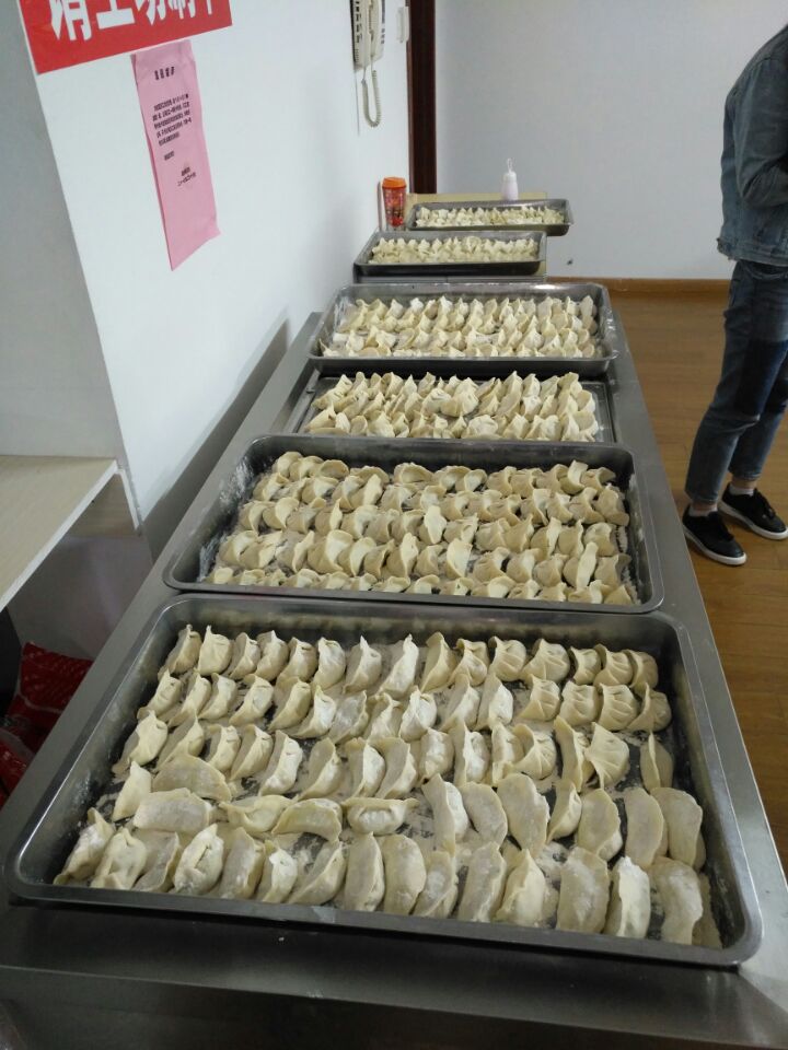 公司工會和后勤保障部為本次活動作了精心的籌備,協(xié)調(diào)職工食堂準(zhǔn)備好了各種材料,參加活動的女職工自帶刀具、搟面杖。上午9時許,30多名女職工齊聚職工食堂。她們個個大顯身手,忙得不亦樂乎……你和面,我搟皮,她包餃子,一道道工序有條不紊,只見女職工們一手托著餃子皮,一手夾著肉餡,舞動著靈巧的手指,一個個精致漂亮、形態(tài)各異、不乏創(chuàng)意十足的餃子就在她們手中成形,在托盤里擺開陣勢,形成了一道靚麗的風(fēng)景。就在你追我趕、歡聲笑語、交流手藝中,1200多個餃子新鮮出爐!有的女職工還不忘把自己的作品拍照傳到微信朋友圈中“曬曬”。臨近中午,餃子下鍋了,誘人的香氣四散開來,令人垂涎欲滴。女職工們你盛一碗,我盛一碗,與剛剛下班的男職工們圍座在一起,一邊回味著活動的快樂,一邊品嘗著勞動的成果,其樂融融地盡情共享餃子盛宴,共同度過一個輕松愉快且有意義的節(jié)日。