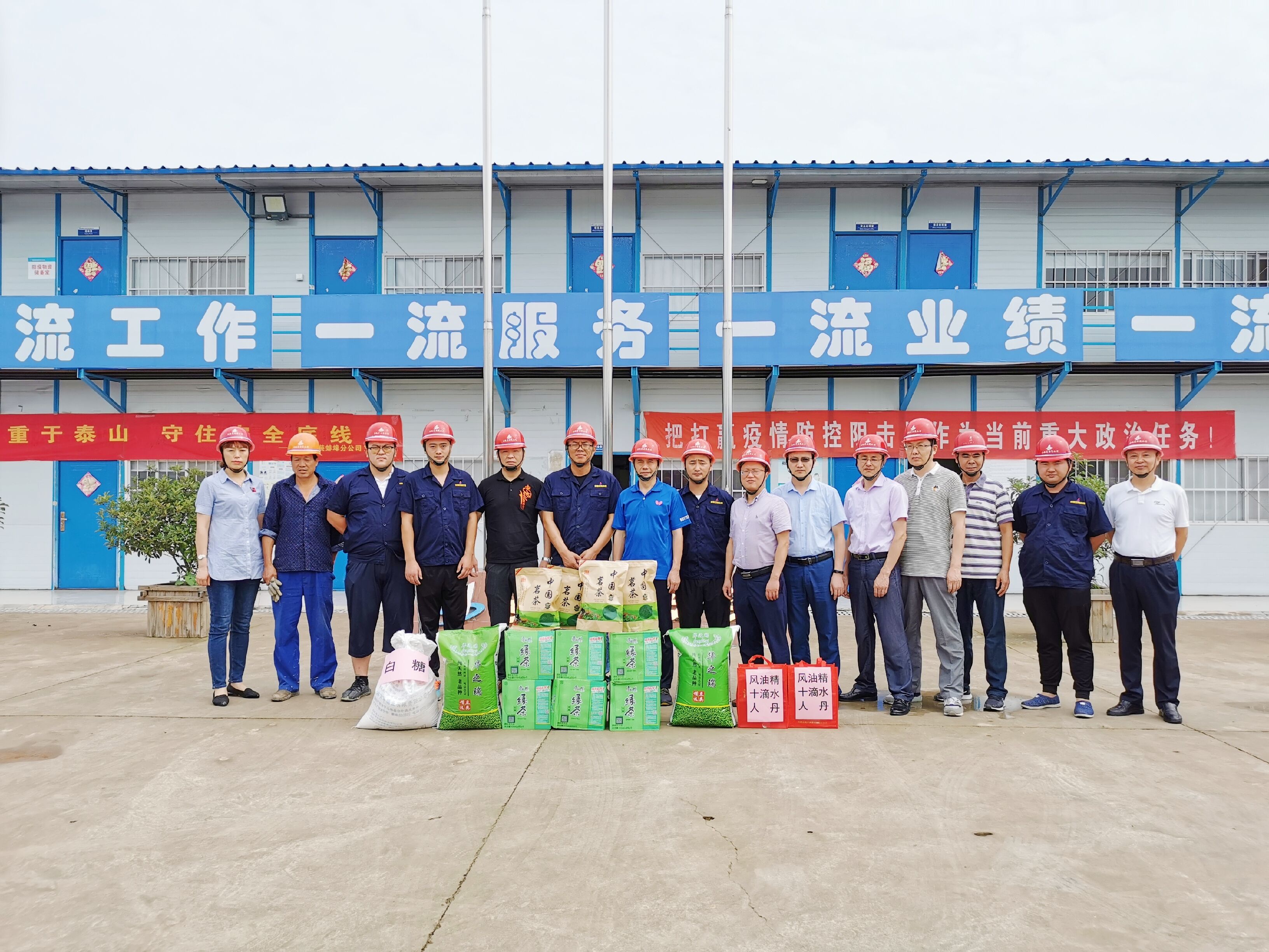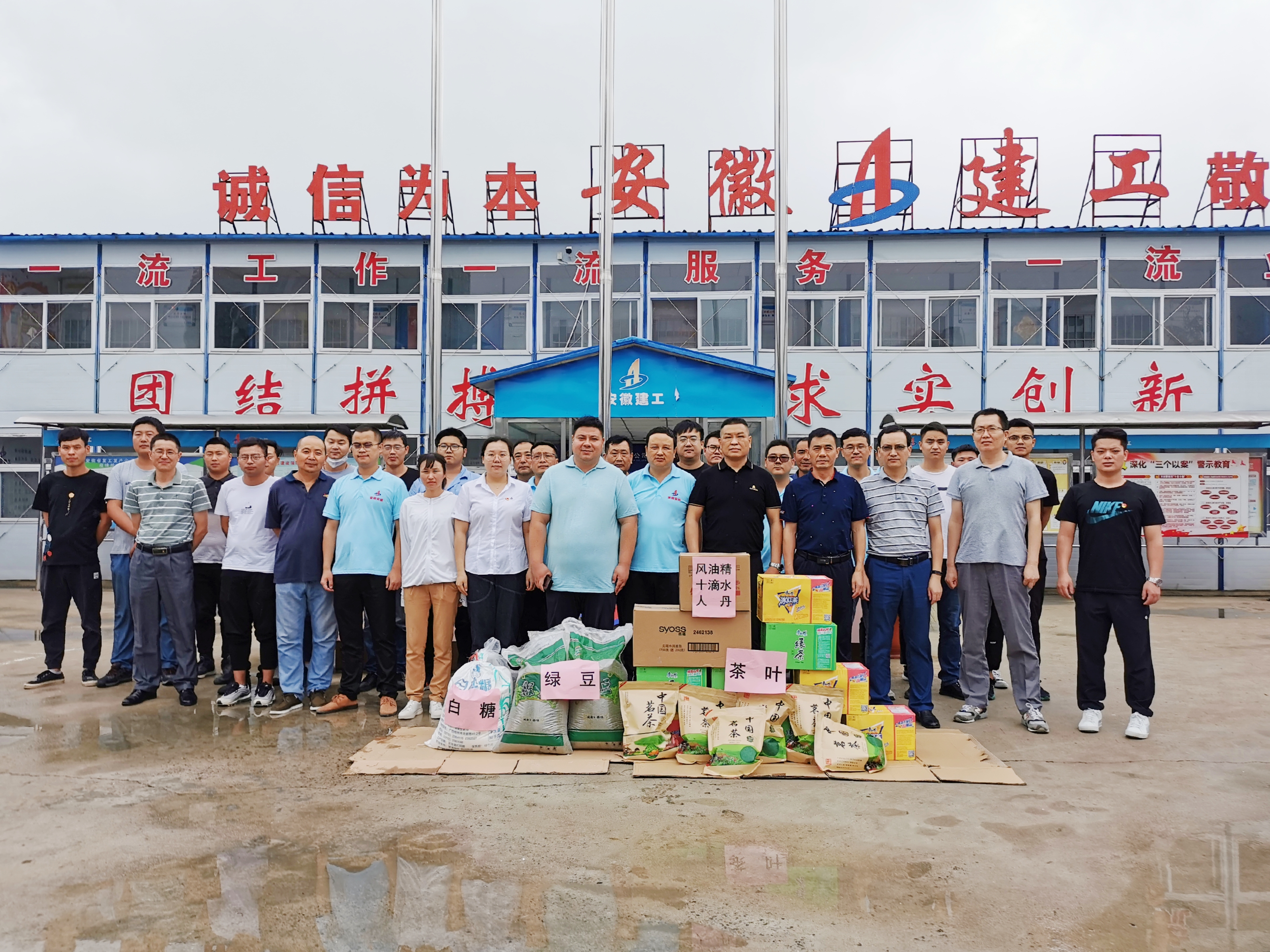 7月15日上午,公司領導深入蚌埠分公司淮河水科院項目部施工現(xiàn)場,為一線員工送去綠豆、白糖、茶葉、藥品等夏季防暑降溫物品。查看了施工現(xiàn)場管理、辦公生活環(huán)境,悉心詢問大家的工作生活情況,對項目部職工不懼高溫、堅守一線的奉獻精神予以充分肯定。要求項目部要切實抓好收尾工程的安全、質量、結算工作,尤其要抓好項目的創(chuàng)優(yōu)創(chuàng)杯工作。