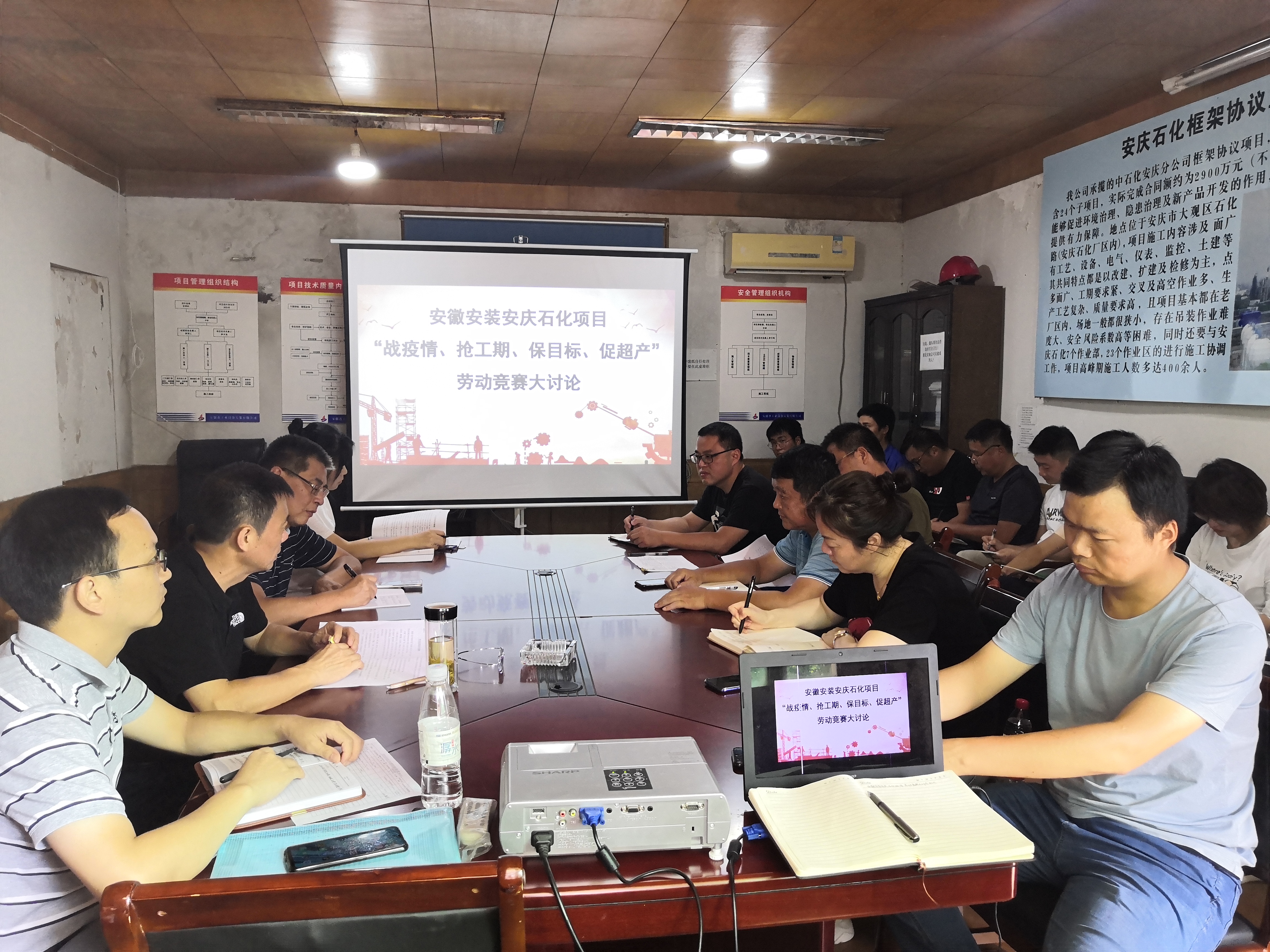 為認真貫徹集團公司“戰(zhàn)疫情、搶工期、保目標、促超產(chǎn)”勞動競賽活動精神,8月20日上午,安徽安裝公司圍繞“不能按時交工為恥辱”的履約意識,在安慶石化項目部會議室組織開展“戰(zhàn)疫情、搶工期、保目標、促超產(chǎn)”主題大討論活動。公司紀委書記、工會主席李寬旭,總會計師張元斌,公司相關(guān)部門負責人,安慶分公司領(lǐng)導(dǎo)班子成員,項目經(jīng)理、技術(shù)負責人等共20余人參加會議,會議由李寬旭主持。