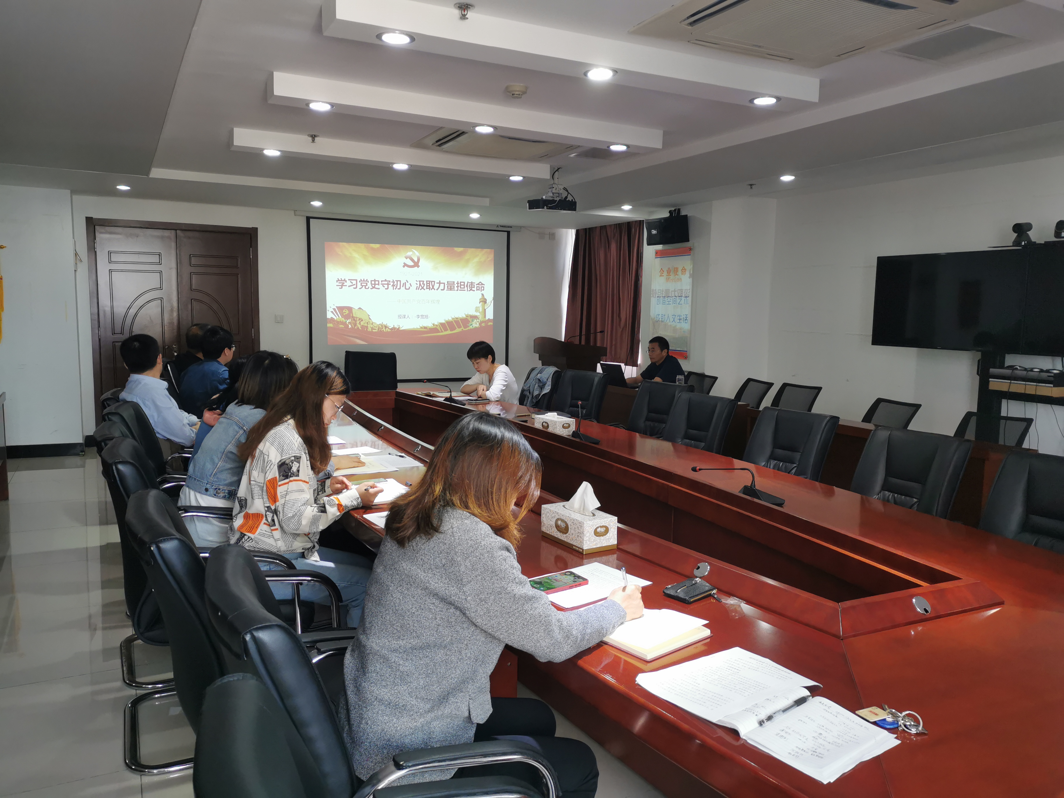 5月21日上午,公司紀(jì)委書記、工會主席李寬旭在機(jī)關(guān)第二黨支部以《學(xué)習(xí)黨史守初心 汲取力量擔(dān)使命》為題為全體黨員上黨史學(xué)習(xí)教育專題黨課,機(jī)關(guān)第二黨支部全體黨員參加黨課學(xué)習(xí)。