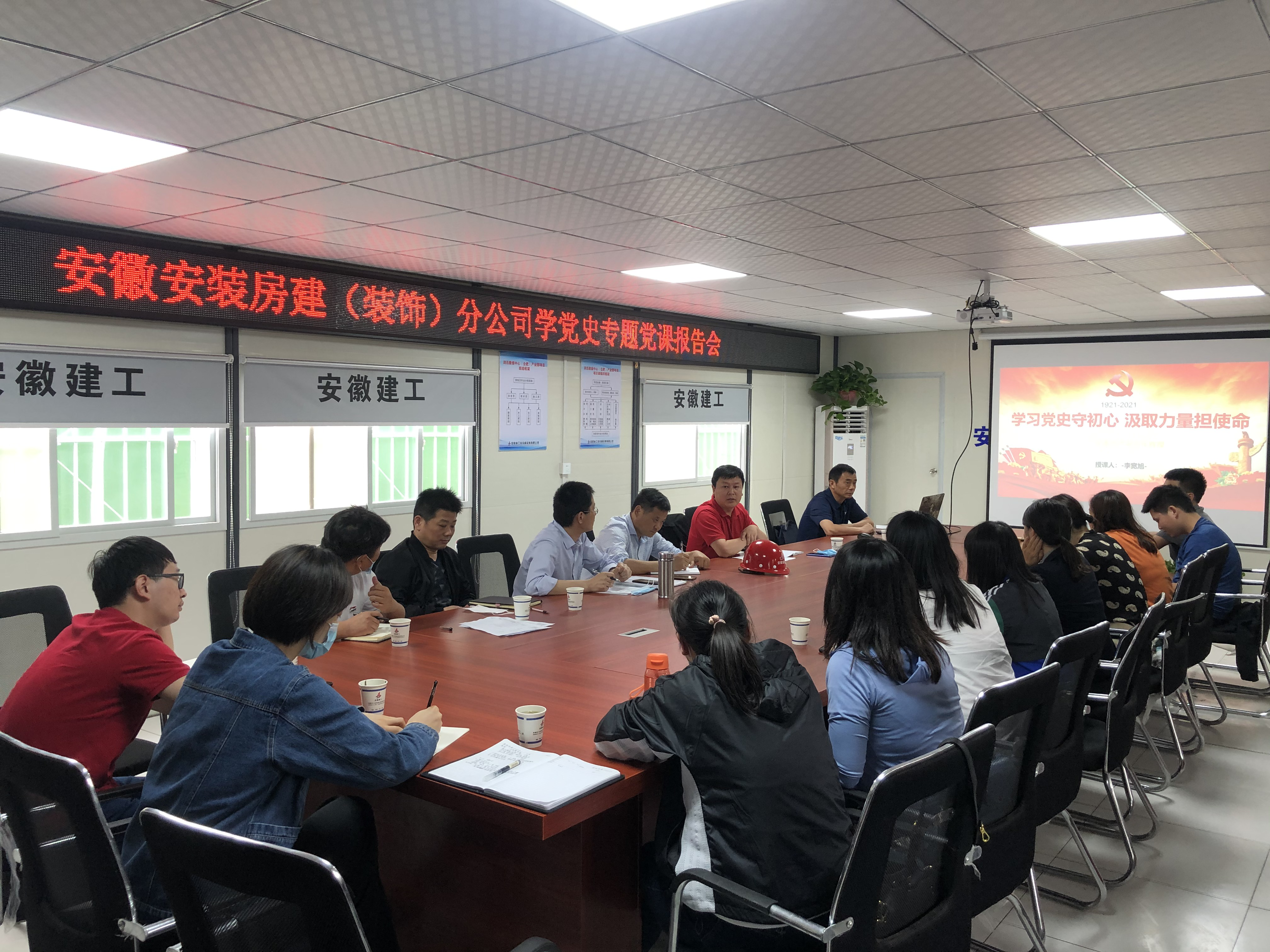 5月21日下午,根據(jù)公司黨委黨史學習教育計劃安排,公司紀委書記、工會主席李寬旭赴房建(裝飾)分公司潤迅數(shù)據(jù)中心(合肥)產(chǎn)業(yè)園項目作基層黨史學習教育專題黨課報告,房建(裝飾)分公司機關(guān)人員、項目一線職工、團員青年等30余人參加了會議。