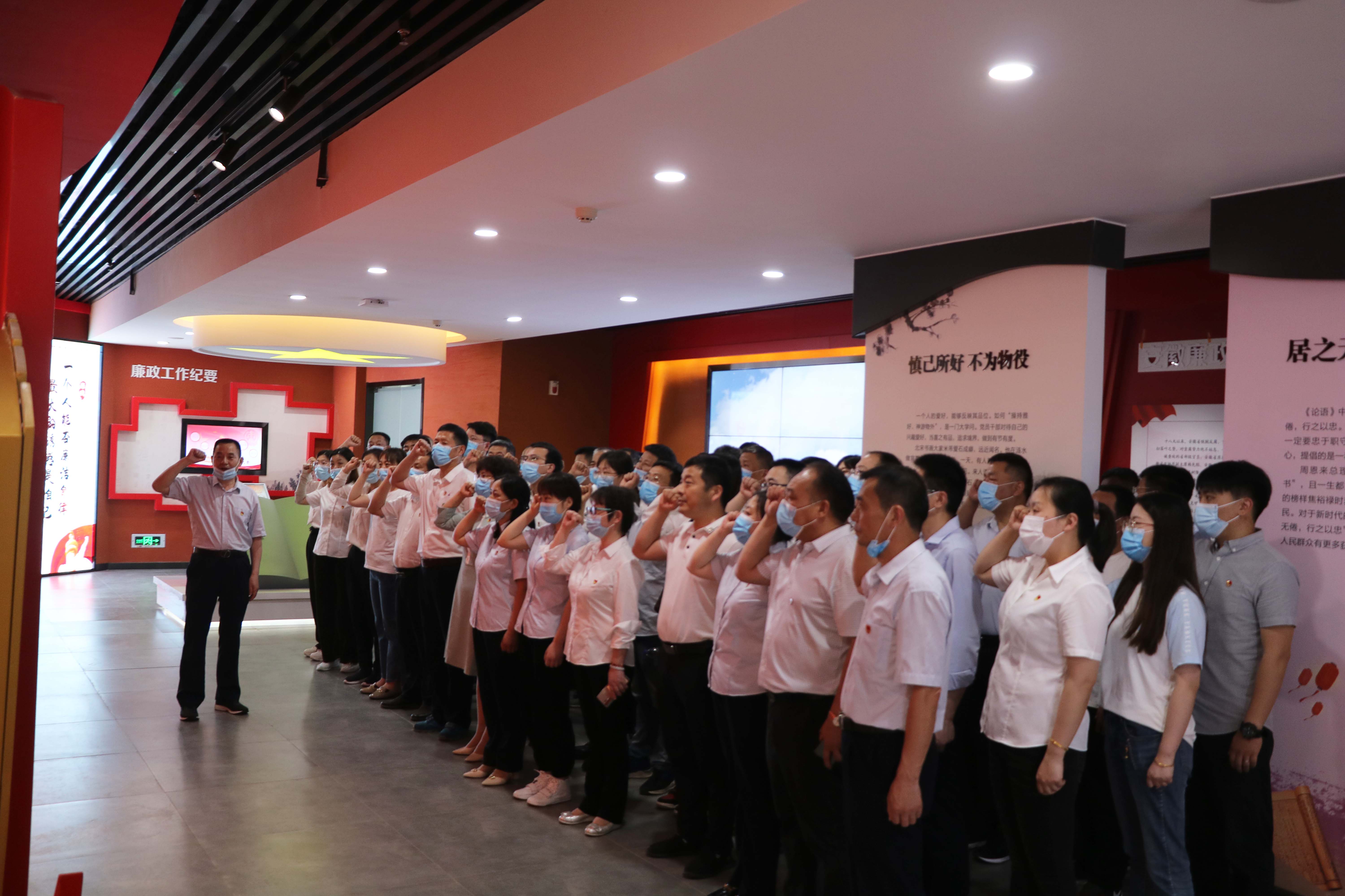 瑤海區(qū)人民法院廉政文化館共兩層,內(nèi)容分為“廉政文化館”“法治文化教育館”和“院史陳列館”三個(gè)篇章,綜合運(yùn)用展板、實(shí)物、雕塑、場(chǎng)景、聲光電等多種形式,將歷史與現(xiàn)實(shí)緊密結(jié)合,多角度、大縱深地闡釋廉潔文化這一主題。在一樓警示教育報(bào)告廳里,在講解員的解說(shuō)下,大家依次參觀了鑒史問(wèn)廉、廉政故事、貪腐之害、時(shí)光隧道、廉潔豐碑、廉政成果、廉政文章、廉政寄語(yǔ)八大板塊,參觀過(guò)程中大家仔細(xì)聆聽(tīng),細(xì)細(xì)研讀,通過(guò)展廳內(nèi)文字、實(shí)物、整合的典型圖文資料、影音影像等,深入學(xué)習(xí)了廉政文化、中國(guó)共產(chǎn)黨反腐倡廉歷史、安徽省反腐倡廉實(shí)踐等內(nèi)容,大家在視覺(jué)、聽(tīng)覺(jué)上接受了一堂全面生動(dòng)的反腐倡廉警示教育課?;顒?dòng)期間,公司黨委書(shū)記、董事長(zhǎng)胡六中帶領(lǐng)在場(chǎng)全體黨員集體重溫入黨誓詞。