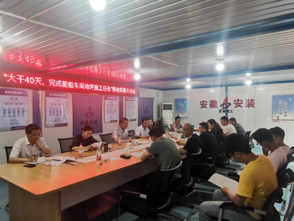 安徽安裝蚌埠臨港智能制造產(chǎn)業(yè)園二期工程舉辦“大干40天 確保完成船舶車間地坪施工任務(wù)”勞動(dòng)競(jìng)賽主題大討論活動(dòng)