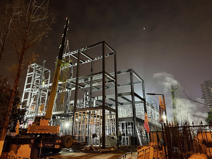 自11月初接到項(xiàng)目任務(wù)以來,面對(duì)一個(gè)月完成三層結(jié)構(gòu)方艙醫(yī)院主體機(jī)構(gòu)、內(nèi)部安裝、室外裝飾的極限工期,安徽安裝公司高度重視、精心組織、科學(xué)安排、迎難而上,全力以赴加快工程建設(shè),期間,公司領(lǐng)導(dǎo)多次前往項(xiàng)目現(xiàn)場(chǎng)幫助協(xié)調(diào)解決工程施工中的難點(diǎn)、困難,為項(xiàng)目人員鼓勁加油;公司相關(guān)部門負(fù)責(zé)人駐扎項(xiàng)目一線,指導(dǎo)協(xié)調(diào)內(nèi)部流程、現(xiàn)場(chǎng)施工、外部對(duì)接、質(zhì)量安全等一應(yīng)事務(wù);分公司第一時(shí)間組織精干力量進(jìn)入項(xiàng)目現(xiàn)場(chǎng),梳理現(xiàn)場(chǎng)情況,核對(duì)圖紙清單,進(jìn)行施工準(zhǔn)備。從公司領(lǐng)導(dǎo)到項(xiàng)目一線,安徽安裝公司自上而下以高度的使命感和責(zé)任感,投入到緊張的工程建設(shè)中去。項(xiàng)目管理人員披星戴月,從早上到夜間駐守在項(xiàng)目一線,每日召開工程會(huì)議,討論施工工作進(jìn)展,制定下一步工作計(jì)劃,安排交叉作業(yè)工序。為保障夜間施工安全,項(xiàng)目部安排兩名安全員輪流值守項(xiàng)目現(xiàn)場(chǎng),夜間在項(xiàng)目現(xiàn)場(chǎng)不斷巡查確保施工安全、高效開展。
