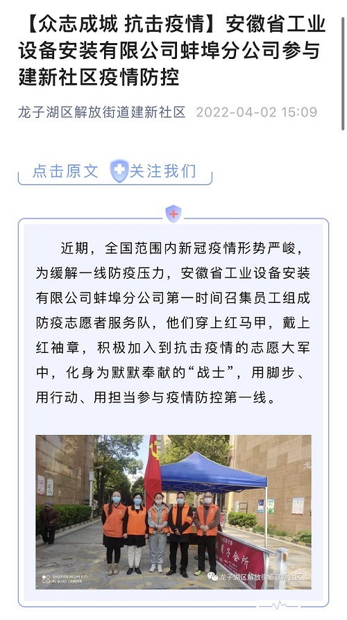 “疫”不容辭、志愿有我 ——蚌埠分公司黨支部開展疫情防控志愿服務活動