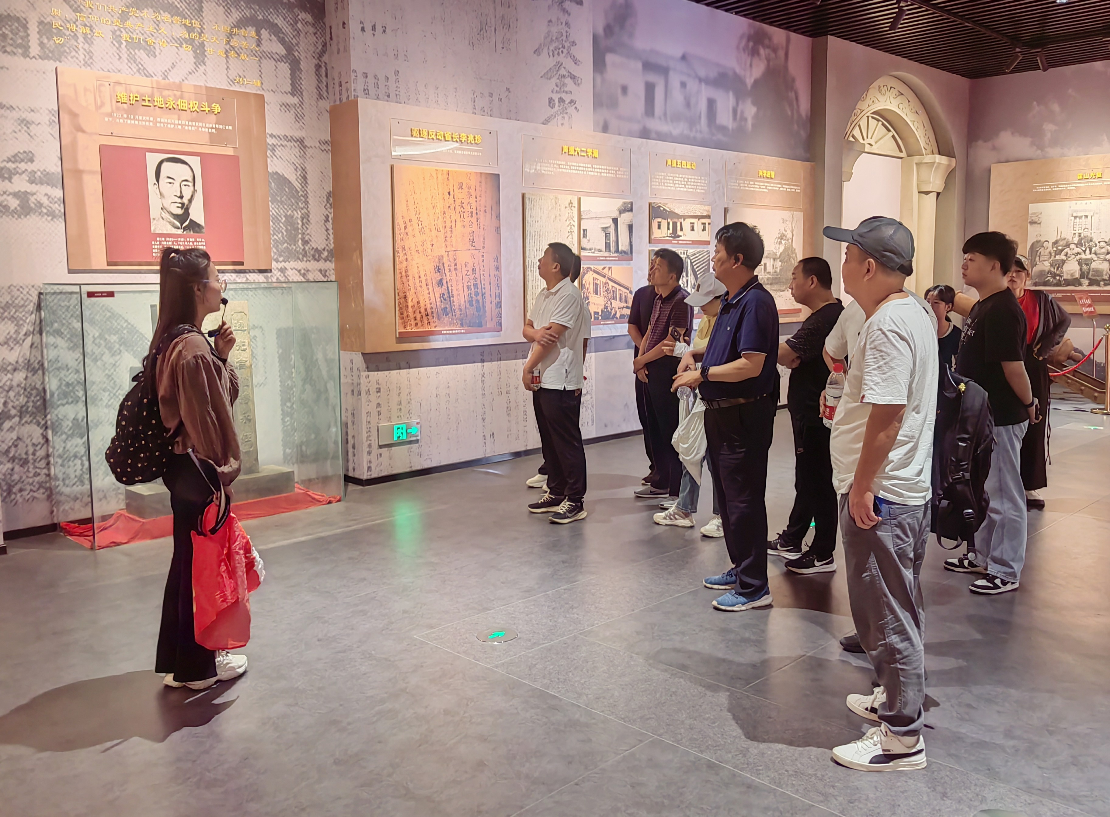 大家首先參觀了安徽紅色區(qū)域中心紀(jì)念館,在解說的帶領(lǐng)下,通過繪畫、雕塑、文獻資料、兵器、烈士遺物等實物詳細了解霍山革命歷史和英雄事跡。隨后又來到了紅源廣場,先后參觀了革命烈士群雕、革命先輩紀(jì)念墻、四個第一歷史豐碑柱,緬懷先輩們的卓越功勛,深切感受到共產(chǎn)黨人追求真理的堅定信念和浴血奮戰(zhàn)的革命精神。