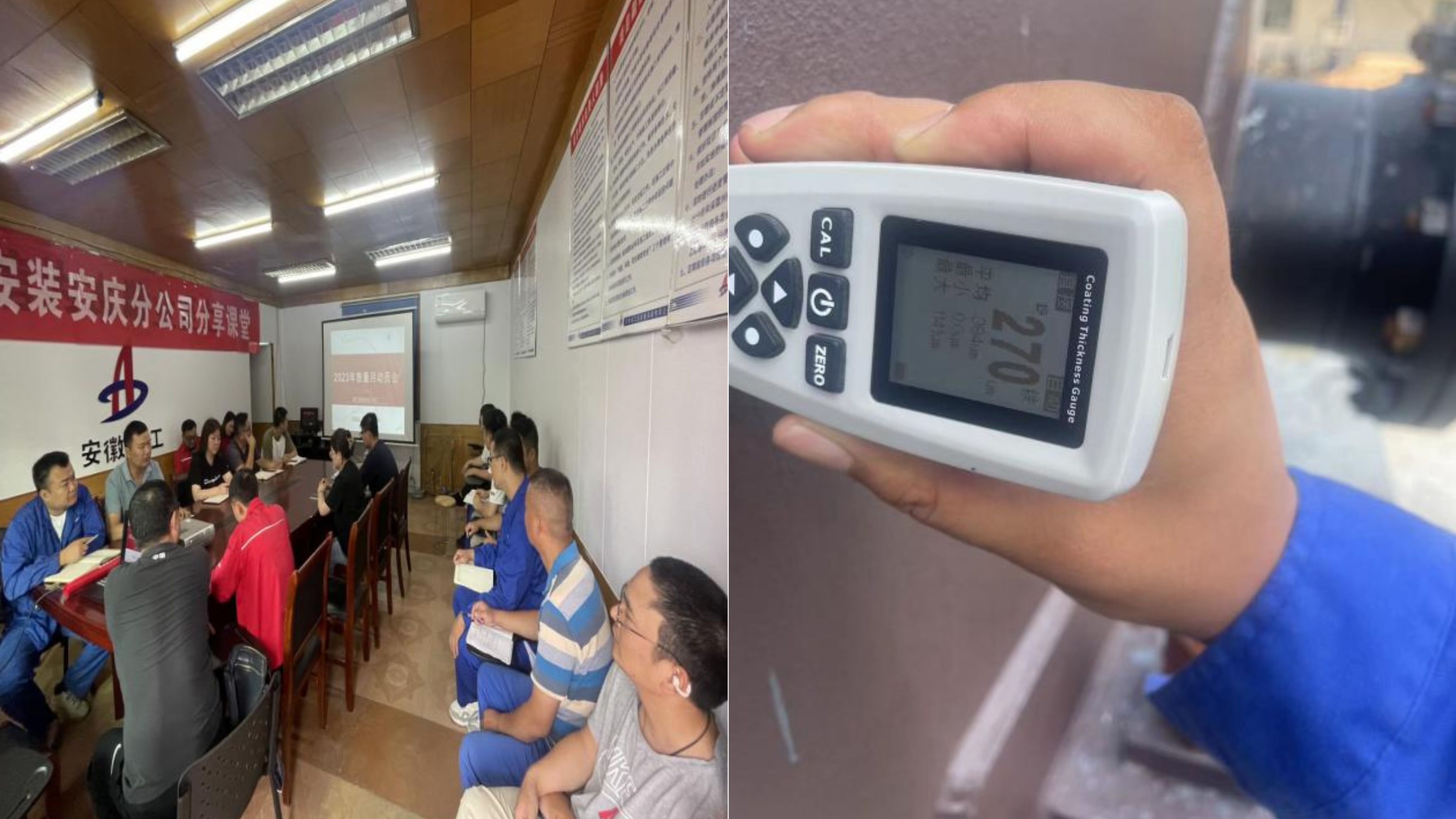 安慶分公司組織機(jī)關(guān)及所屬項(xiàng)目舉行“質(zhì)量月”動(dòng)員會(huì),安慶石化循環(huán)水項(xiàng)目開展儲(chǔ)罐防腐保溫專項(xiàng)檢查(檢查中間漆涂層厚度)
