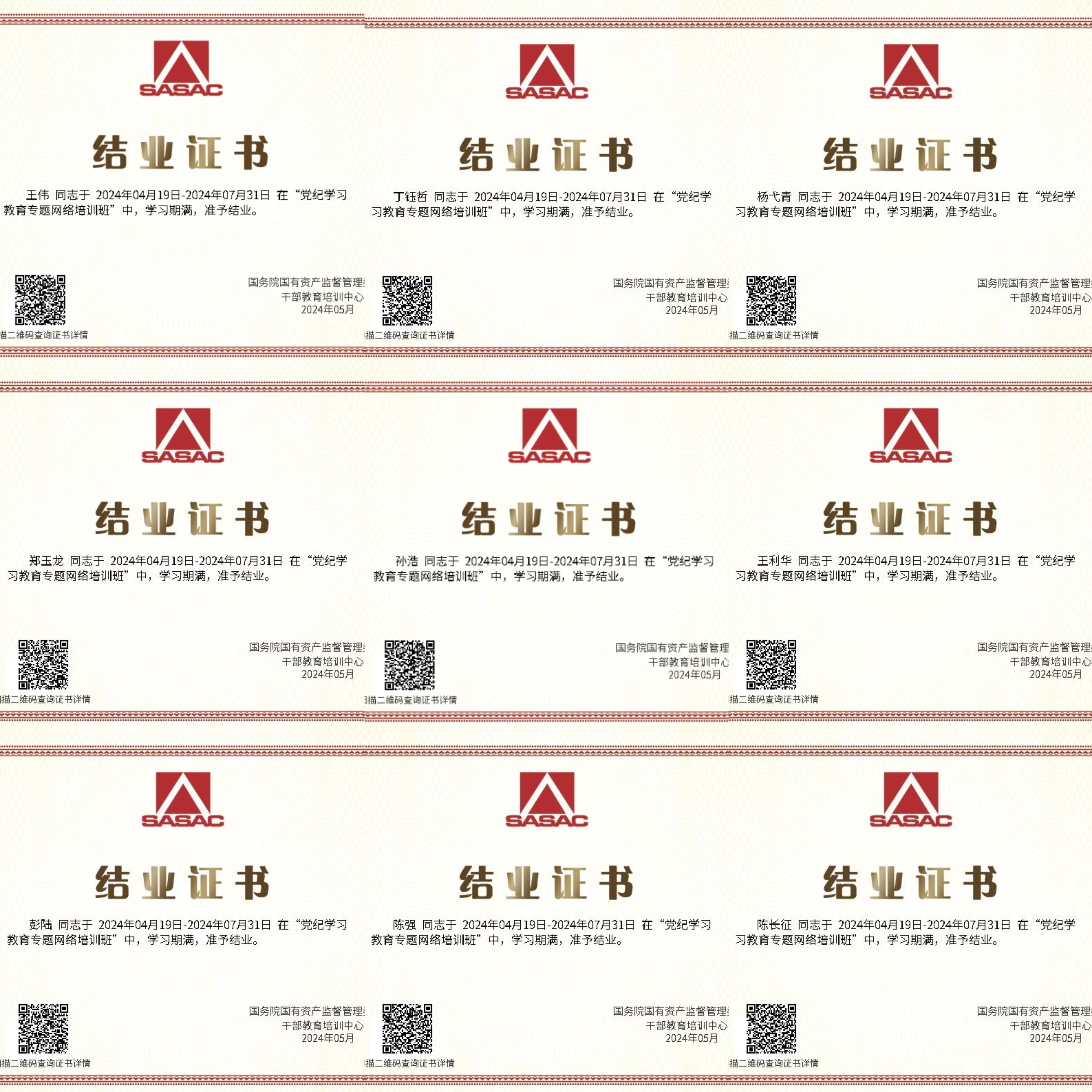 結(jié)業(yè)證書(部分)