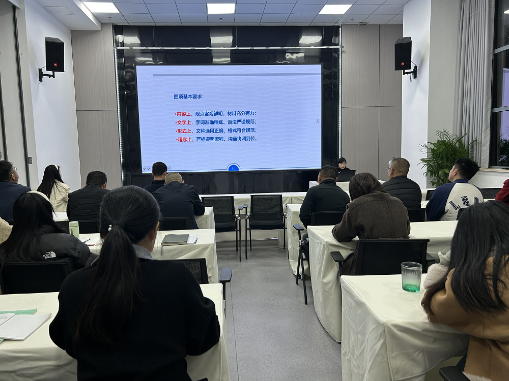黃俊筠圍繞“日常辦公制度、常見公文寫作要點、商務(wù)禮儀”等方面內(nèi)容,重點解讀了業(yè)務(wù)接待、差旅費、跟進(jìn)督辦等日常辦公制度。結(jié)合自身工作體會,黃俊筠用豐富的課件內(nèi)容,由淺入深地講解了常用公文的寫作技巧和接待工作的基本禮儀,并以實際案例分析工作中容易出現(xiàn)的問題和疏漏的細(xì)節(jié),提出改進(jìn)的方法。