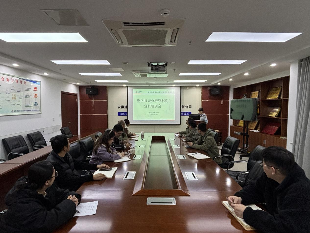 11月20日晚,建工安裝機(jī)電公司組織開展“財(cái)務(wù)報(bào)表分析”暨制度宣貫專題培訓(xùn)。本次培訓(xùn)由機(jī)電公司財(cái)務(wù)部經(jīng)理崔進(jìn)主講,機(jī)關(guān)各部門負(fù)責(zé)人、財(cái)務(wù)部全員及在蚌項(xiàng)目成本核算員參會(huì)。